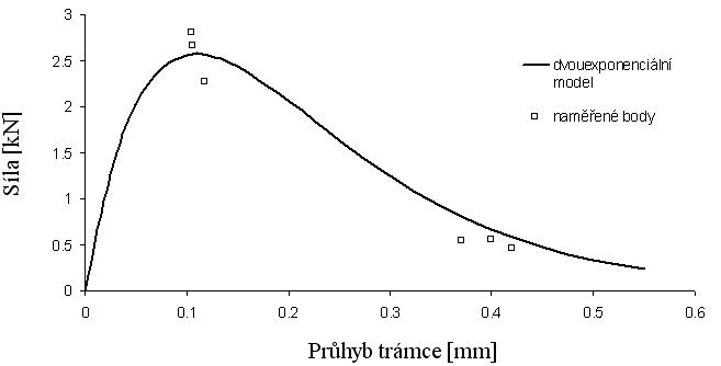 K určování lomově-mechanických vlastností betonu lze využít zkoušku tříbodovým ohybem vzorku s centrálním zářezem v oblasti „tažených vláken“. Typickým výstupem bývá pak např. hodnota prodloužení efektivní trhliny/zářezu, hnací síla trhliny, efektivní lomová houževnatost a lomová energie. Podkladem výpočtu těchto hodnot je diagram zatížení-průhyb uprostřed rozpětí. Poměrně složitý průběh tohoto l-d diagramu lze u kvazikřehkých materiálů vystihnout relativně jednoduchými funkcemi. V příspěvku jsou prezentovány možnosti užití tzv. dvouexponenciálního modelu (dále jen 2e model) a jsou testovány na ucelené experimentální sérii l-d diagramů získaných z lomových experimentů – zkoušky tříbodového ohybu betonových vzorků se zářezem.