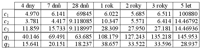 Ze vztahu (2) pro konstantu q1 vyplývá, že se vzrůstem parametru c1 bude klesat rozdíl mezi parametry c2 a c3, což vede k numerické nestabilitě – vliv chyby v určení parametrů c2 a c3 prudce vzrůstá s velikostí parametru c1 (viz Tab. 1). Jelikož Barrem doporučený postup pro stanovení parametrů modelu pro určité případy vede na velkou hodnotu c1, je třeba opatrnosti s určením počtu platných míst při zaokrouhlování parametrů c2 a c3.
