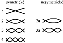 Speciální pozornost si zasluhují oba nesymetrické tvary. V simulaci vznikají ztrátou symetrie úlohy z vyšších symetrických tvarů. Nesymetrický tvar 2a (viz obr. 7) vzniká ze symetrického tvaru s indexem 4. Nesymetrický tvar 3a (viz obr. 8) zřejmě vzniká ze symetrického tvaru s indexem 5.